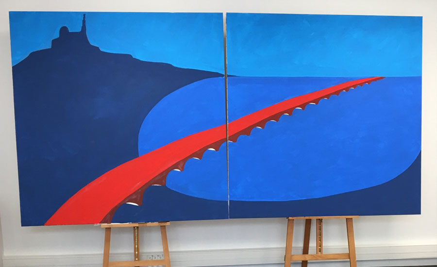 - Peinture sur place d’un dyptique à vocation itinérante dans ses succursales