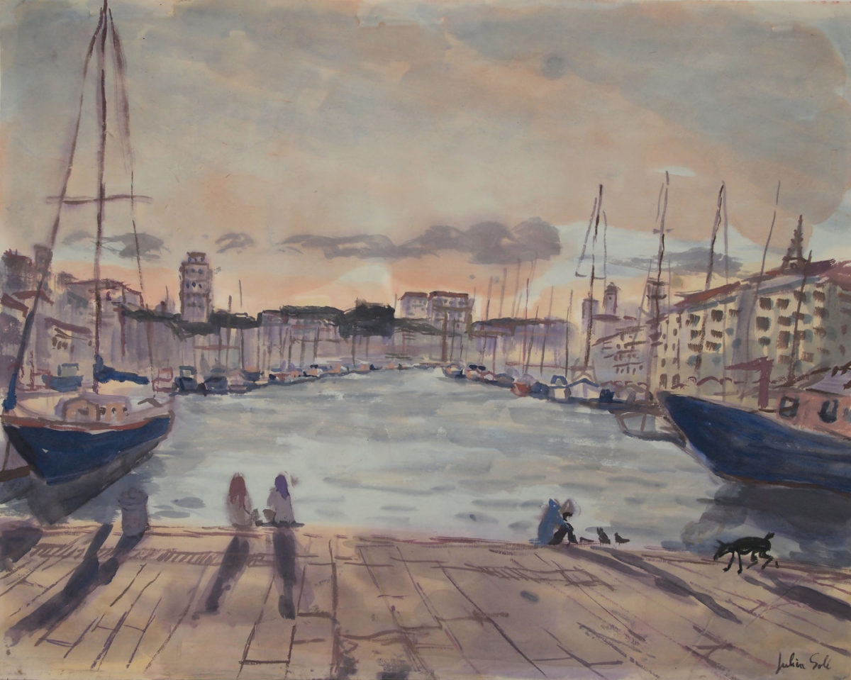 En 1999, à la fin de ses études d’ingénieur (Polytechnique, Eaux et Forêts), Julien Solé part en voyage et se met sérieusement à dessiner. Il s’installe à Marseille mais continue à faire des allers retours entre l’Orient et la France. Ce qu’il dessine ? Les visages, les postures, les villes et leurs accumulations. ll remplace peu à peu les carnets et les feuilles par des supports moins conventionnels : des rouleaux qu’il installe sur des machines à manivelle, des pages de livres et d’archives qui racontent l’histoire du lieu et qu’il assemble pour former d’immenses fresques, comme celle de la Bibliothèque d’Alexandrie (2010). Il a été invité pour créer des expositions et des installations aux Instituts Français de Fès, d’Addis Abeba et d’Alexandrie, ainsi qu’aux Salons du livre de Perpignan et de Beyrouth.