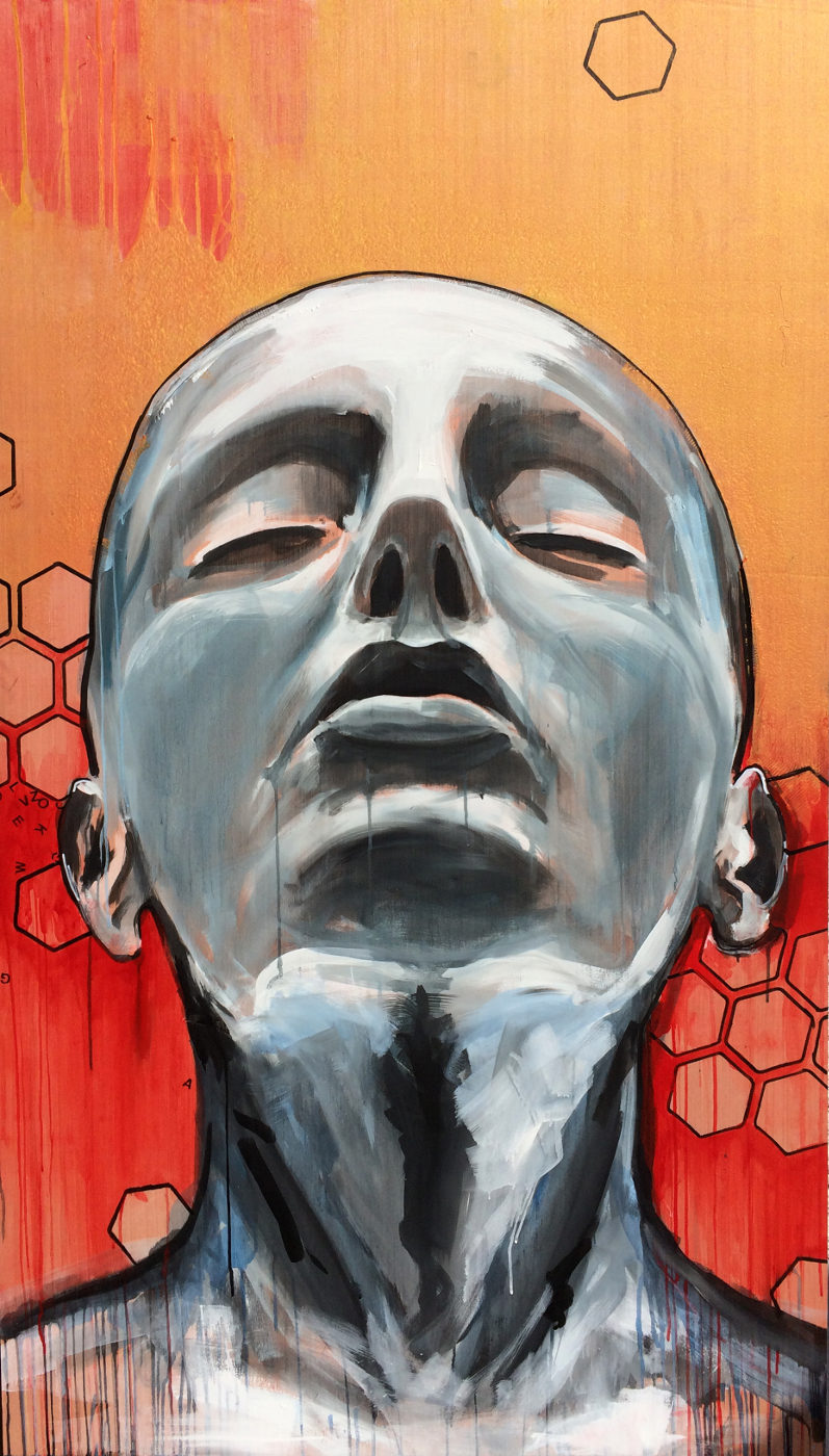 La peinture de Laëtitia Giraud est réalisée directement sur toile sans études préparatoires ni projection, d'après modèles photographiques personnels.