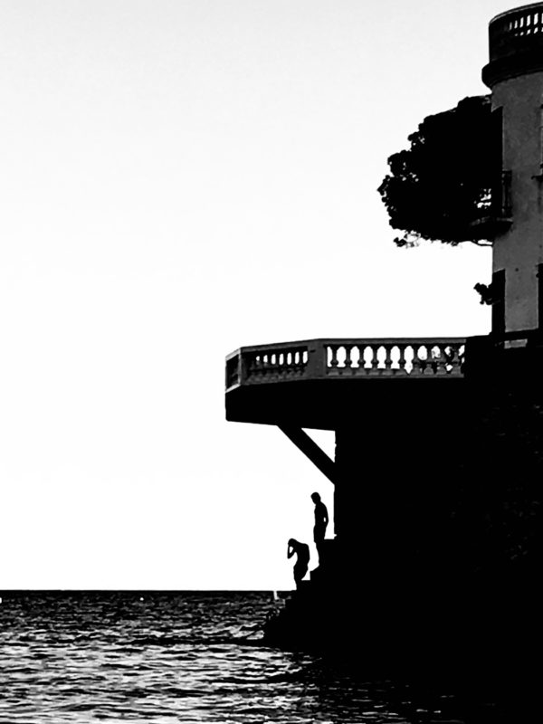 Telles des silhouettes d’éphèbes grecs ou tels Sisyphe et Dédale, ces baigneurs prêts à plonger dans la Grande Bleue offrent leurs belles silhouettes noires sous la grande lumière méditerranéenne. Radieux et heureux.