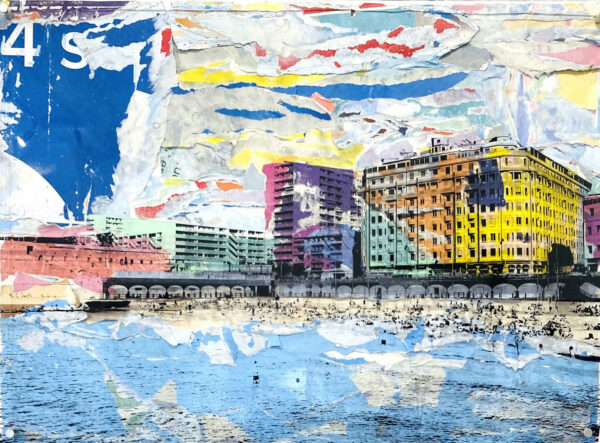 Photo imprimée sur plexi / collage de lacérations urbaines sur châssis entoilé et peinture acrylique.