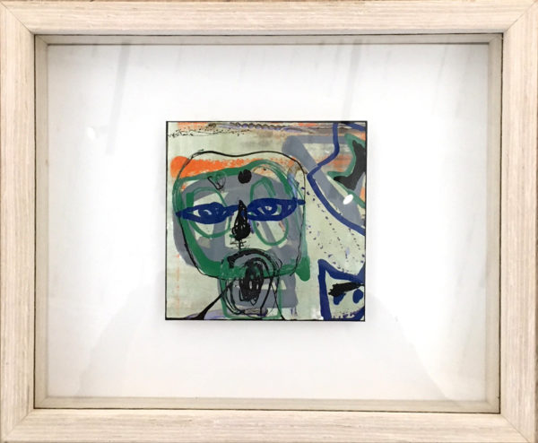 Œuvre 10x10cm, vendue avec cadre bois clair et vitre plexiglass 25x20cm.