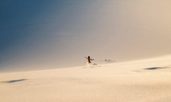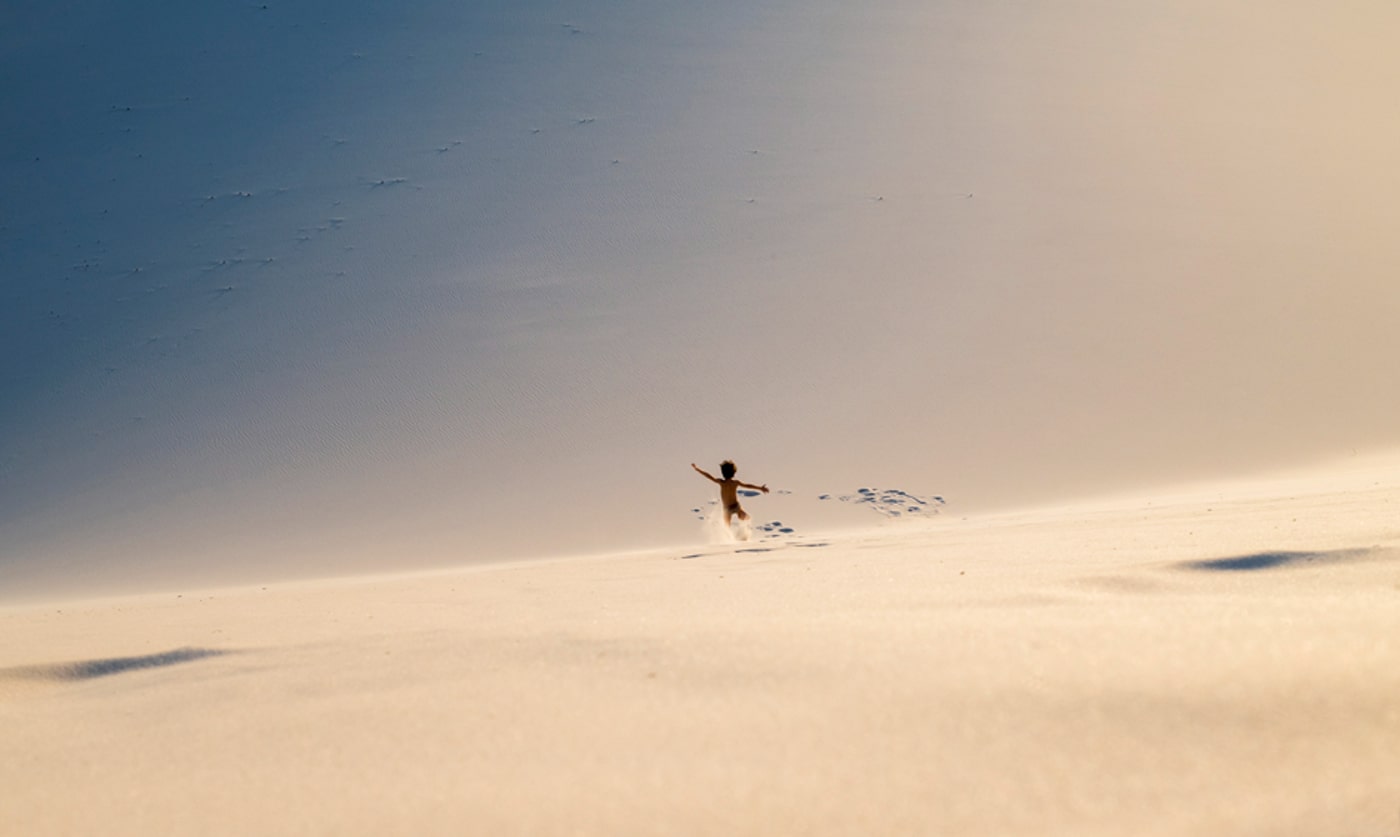Un enfant court dans les dunes du Parc national des Lençóis Maranhenses, Brésil.