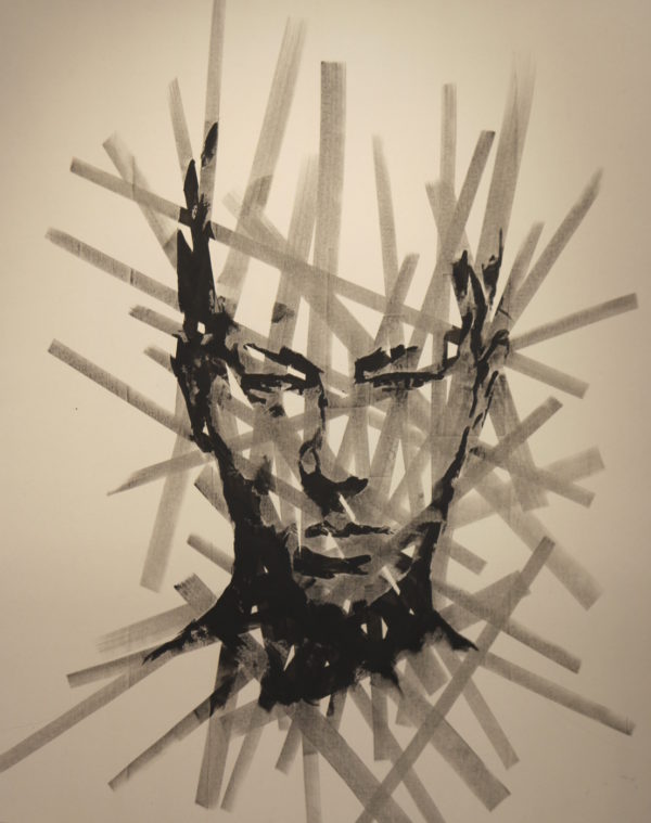 Série « Fragments ». Visage, bandes grises.