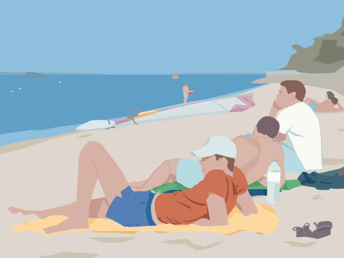 Plage des Catalans. Dès que le temps n’est pas beau (dans le sens où l’entendent les marseillais) – le ciel un peu gris, la température moyenne, un peu de vent présent – la plage devient très calme.