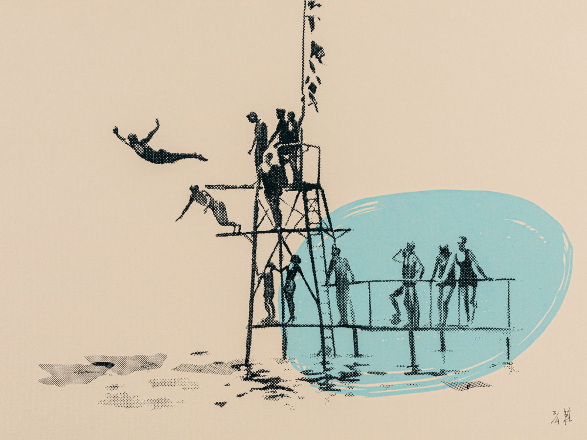 A partir de photos oubliées, témoins de vies anonymes, je me laisse guider par ces fragments de mémoire, moments de bonheur partagés au bord de l’eau.