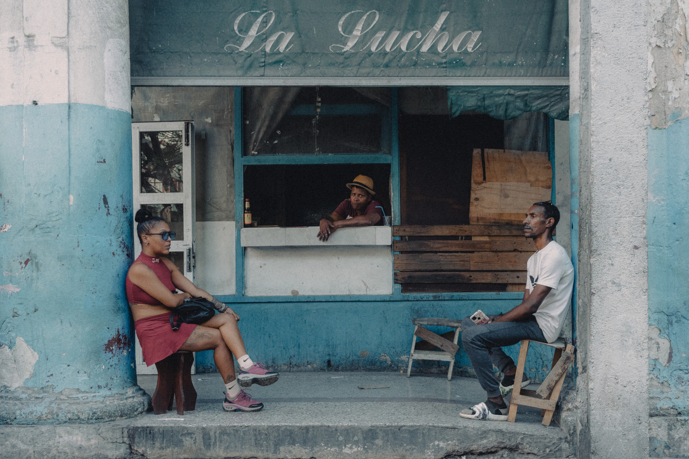 Sous l’ombre du porche, chacun fait une pause dans sa propre lutte quotidienne. La Havane, Cuba.