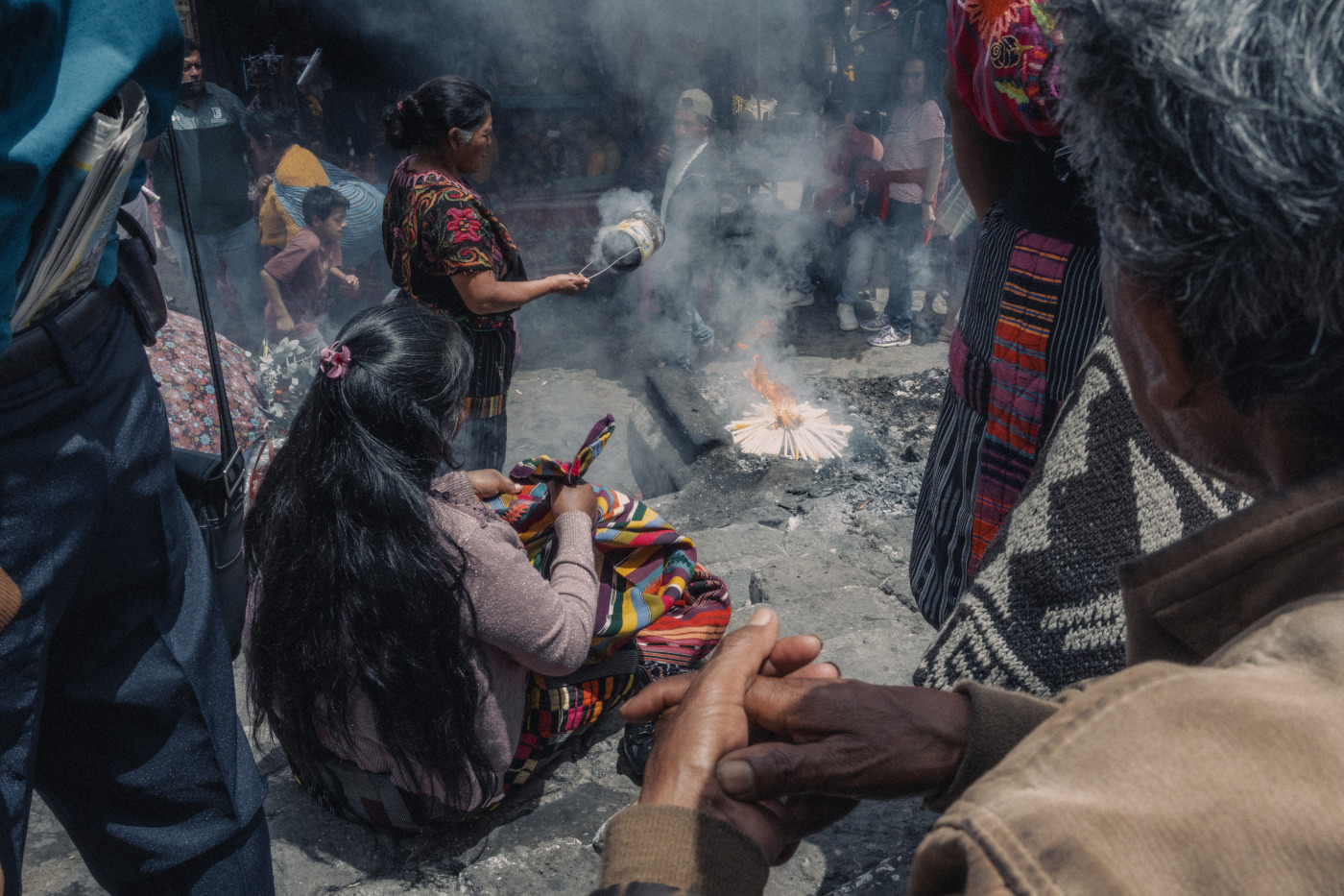 Les prières se mêlent à la fumée et aux couleurs du marché sacré. Chichicastenango, Guatemala.