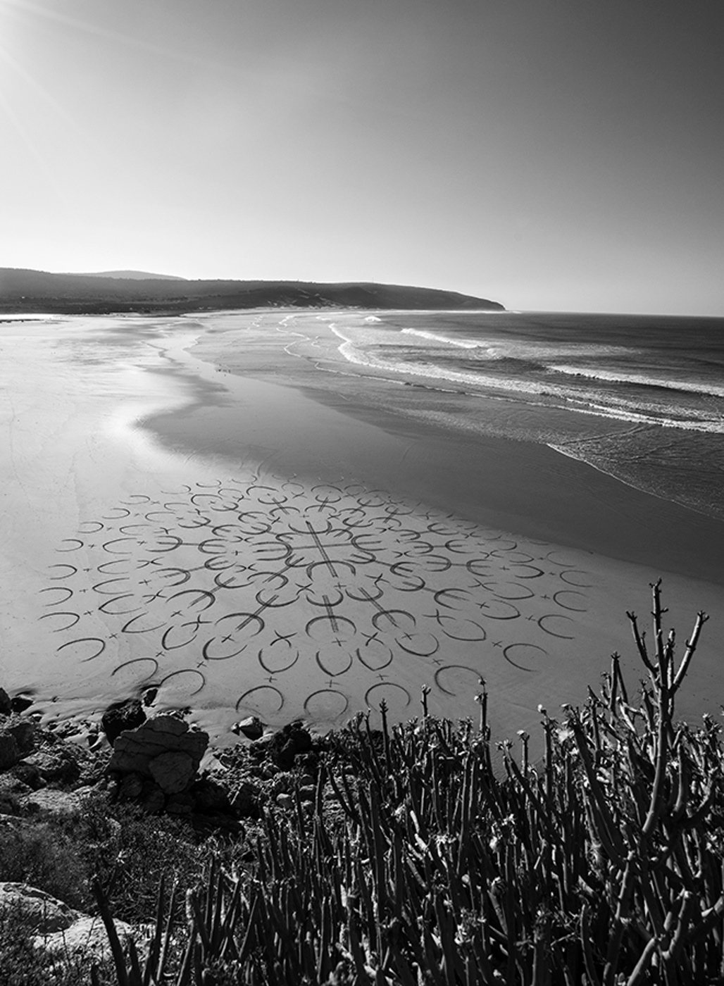 Œuvre improvisée à Tafedna au Maroc en 2016, inspirée des zelliges et du design islamique.