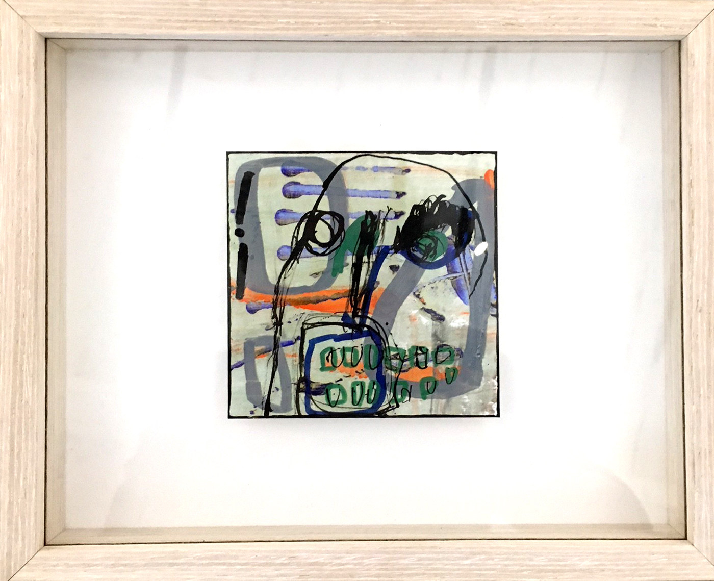 Œuvre 10x10cm, vendue avec cadre bois clair et vitre plexiglass 25x20cm.