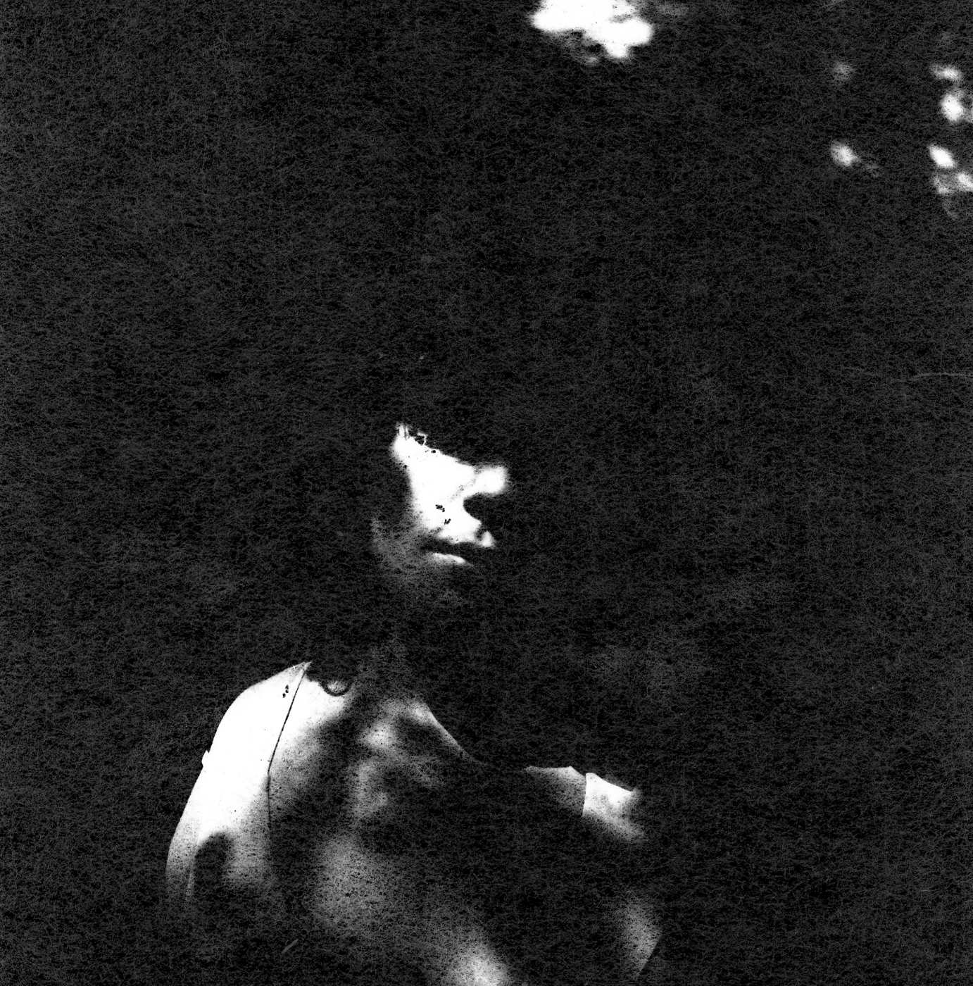 Dans la texture du papier, se dessine une silhouette se dégageant à peine de son décor, confondue.