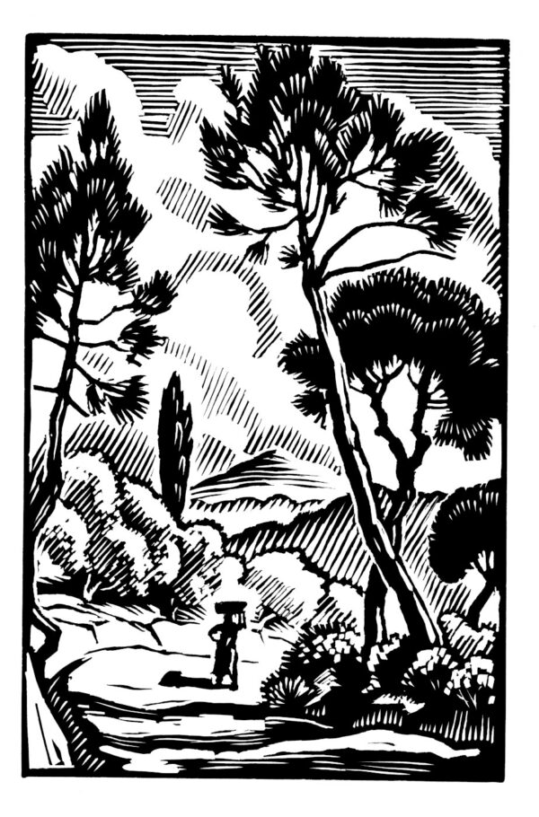Reproduction en sérigraphie d’une gravure d’illustration du roman « Mon gai royaume de Provence » de Maurice Constantin-Weyer, 1937.
