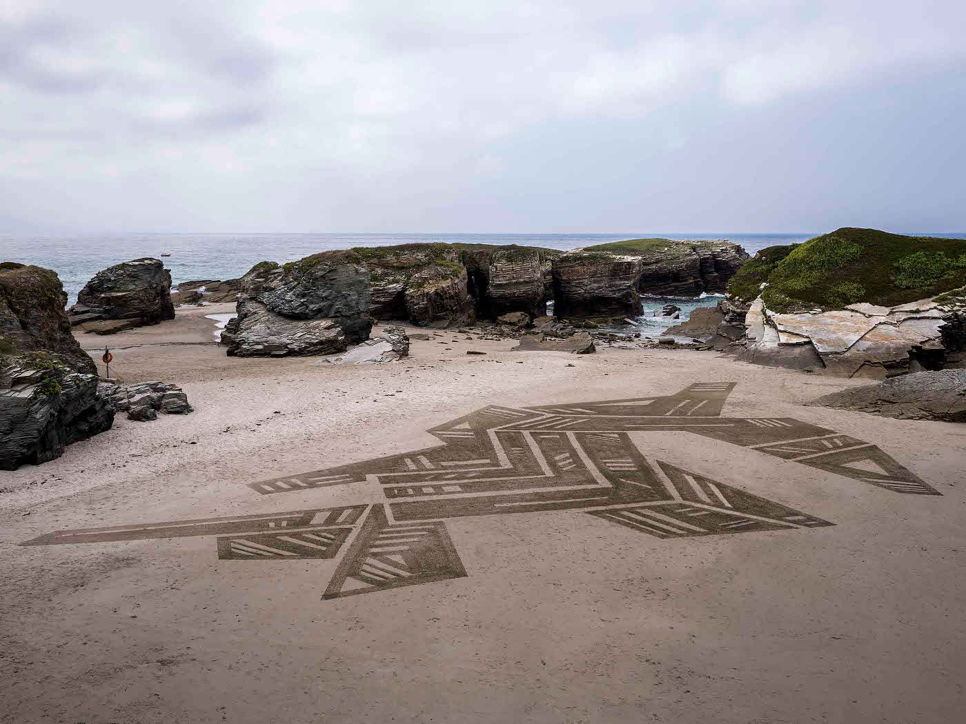 Œuvre réalisée sur une plage en Galice, Espagne, en 2017, inspirée des plaques et roches avoisinantes.