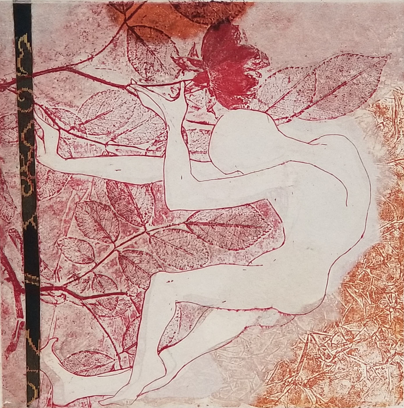 Collage de papier et de soie japonais. Plaque 20x20cm, papier 40x40cm. Vendu avec passe-partout, six exemplaires.