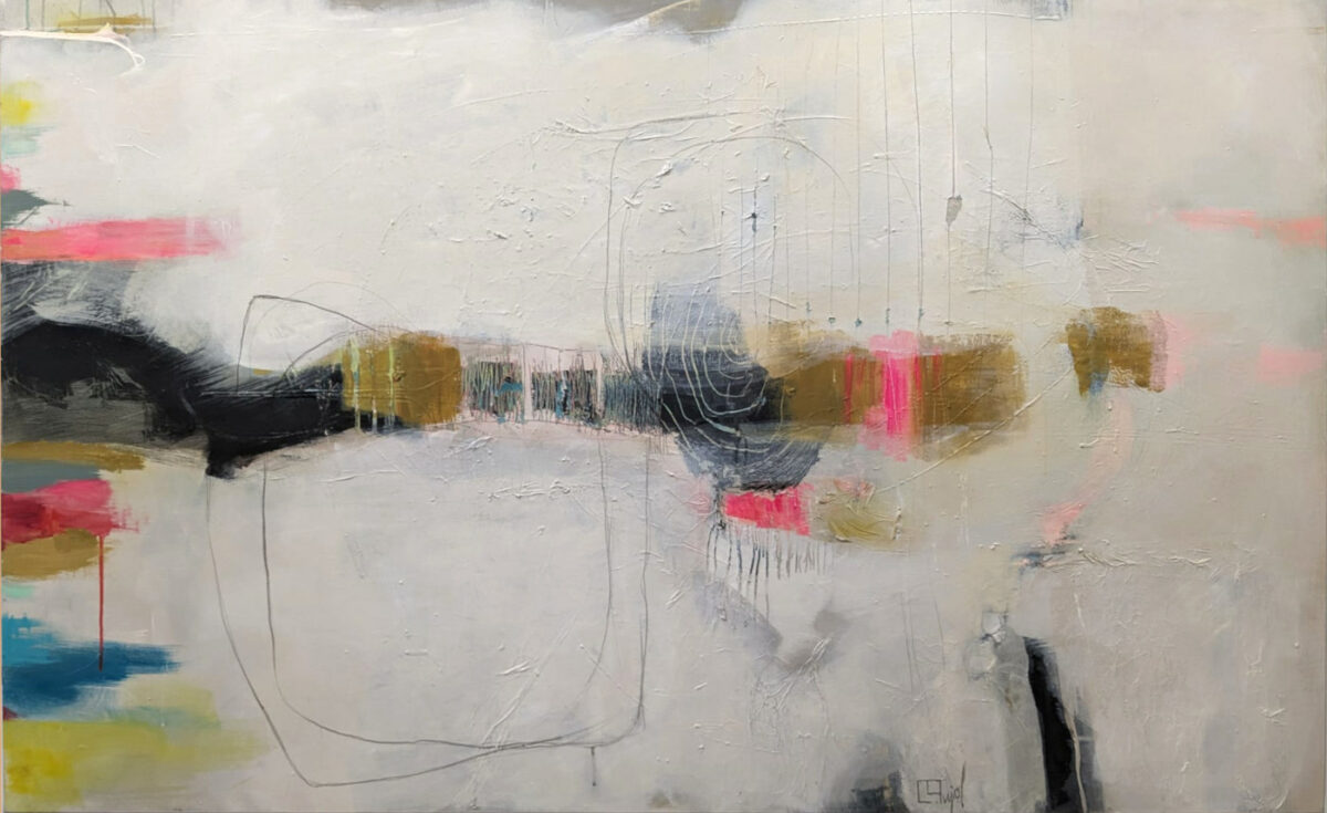 Passionnée par le dessin et le graphisme je suis venue tout naturellement à la peinture après avoir exploré le monde du spectacle et plus précisément celui de la danse (que je pratique aussi). Créer des vêtements pour les danseurs, voir évoluer les tissus sur leurs corps en perpétuel mouvement, tels des tableaux vivants, m’a donné cette envie de peindre, me libérant des contraintes techniques.