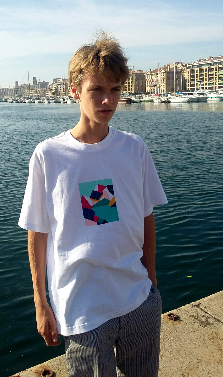 Au-delà de son travail de peinture et de sérigraphie, le monde coloré et géométrique de Séverine est très prisé des marques et designers. On la retrouve notamment chez Qwetch (gourdes), Element (skates, textile), Olow (sweats), Acte Deco (papiers peints), Snap Climbing (sacs à dos), et bien d’autres.