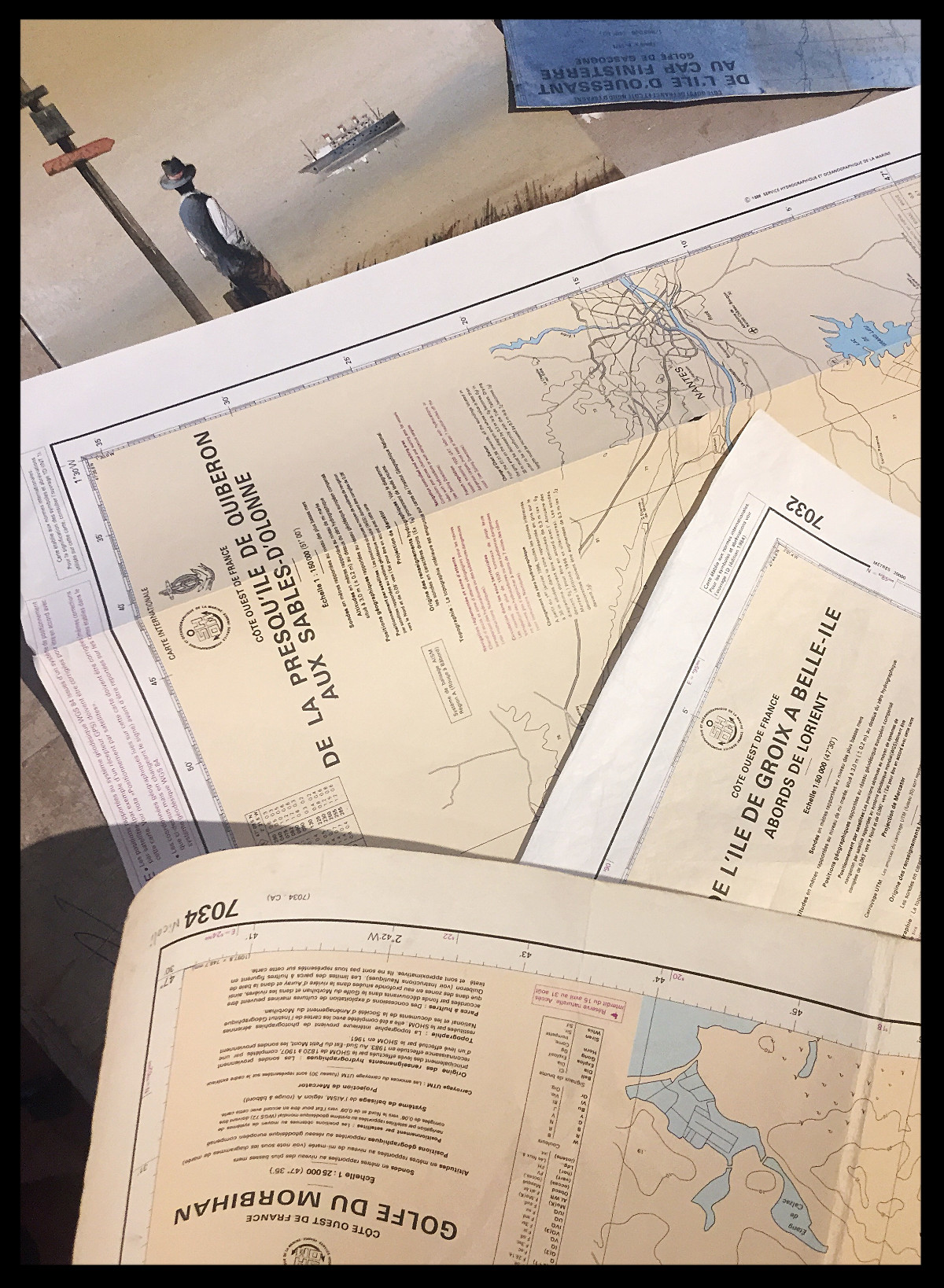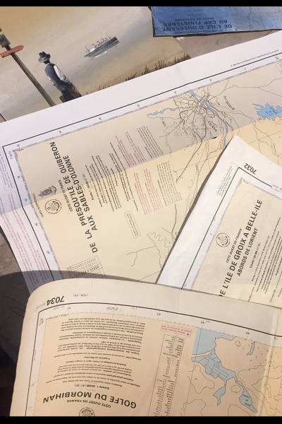 « Nous adorons naviguer sur le Golfe du Morbihan et vers Carnac et la Trinité. Nous avons plein de cartes annotées. Est-il possible que votre artiste réalise un tableau pour nous sur une de ces cartes ? »
